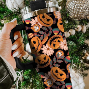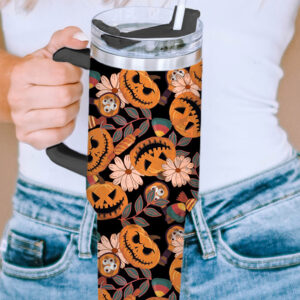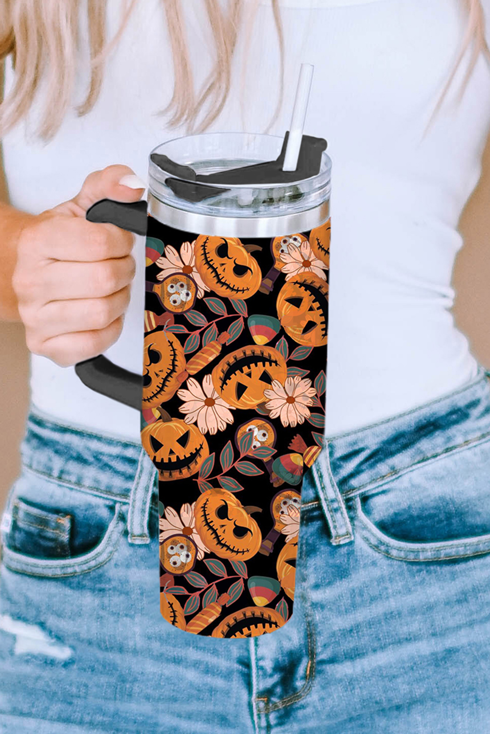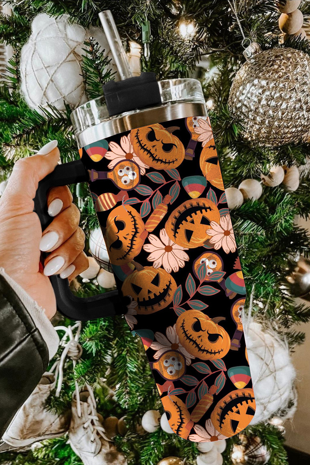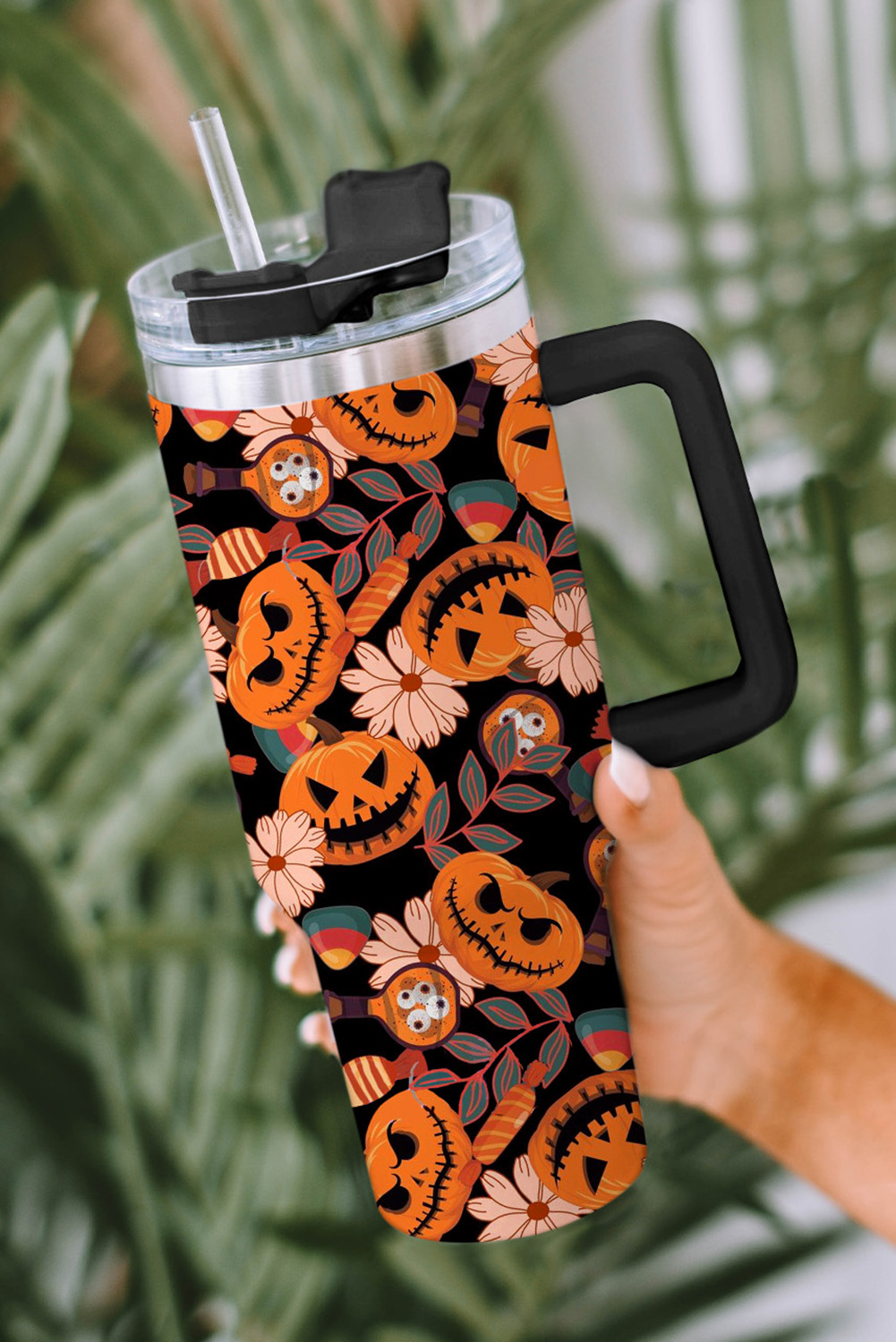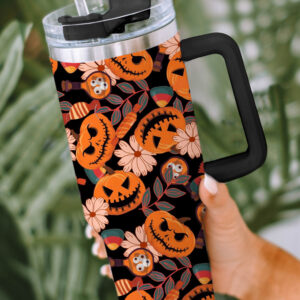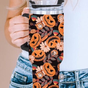 - Halloween-themed pumpkin print adds a festive touch to your drinkware collection