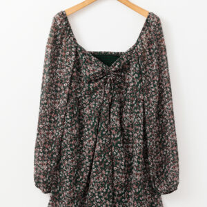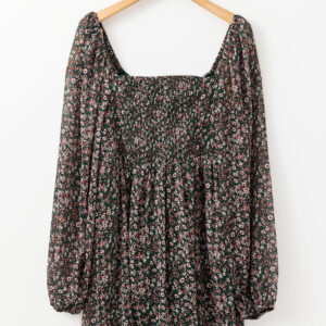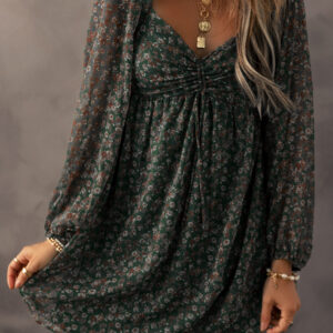 Green Floral Print Sweetheart Neck Shirred Back Mini Dress