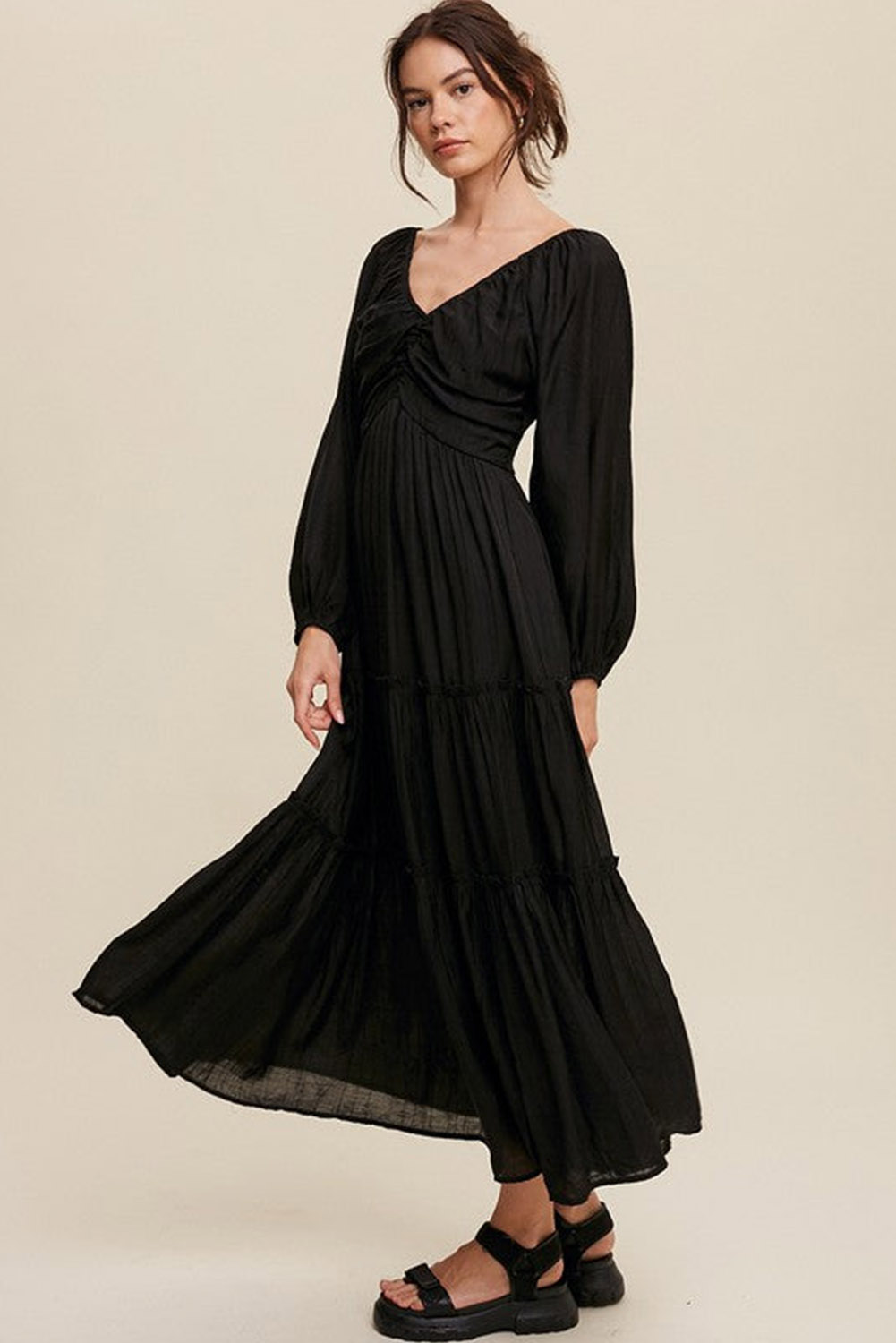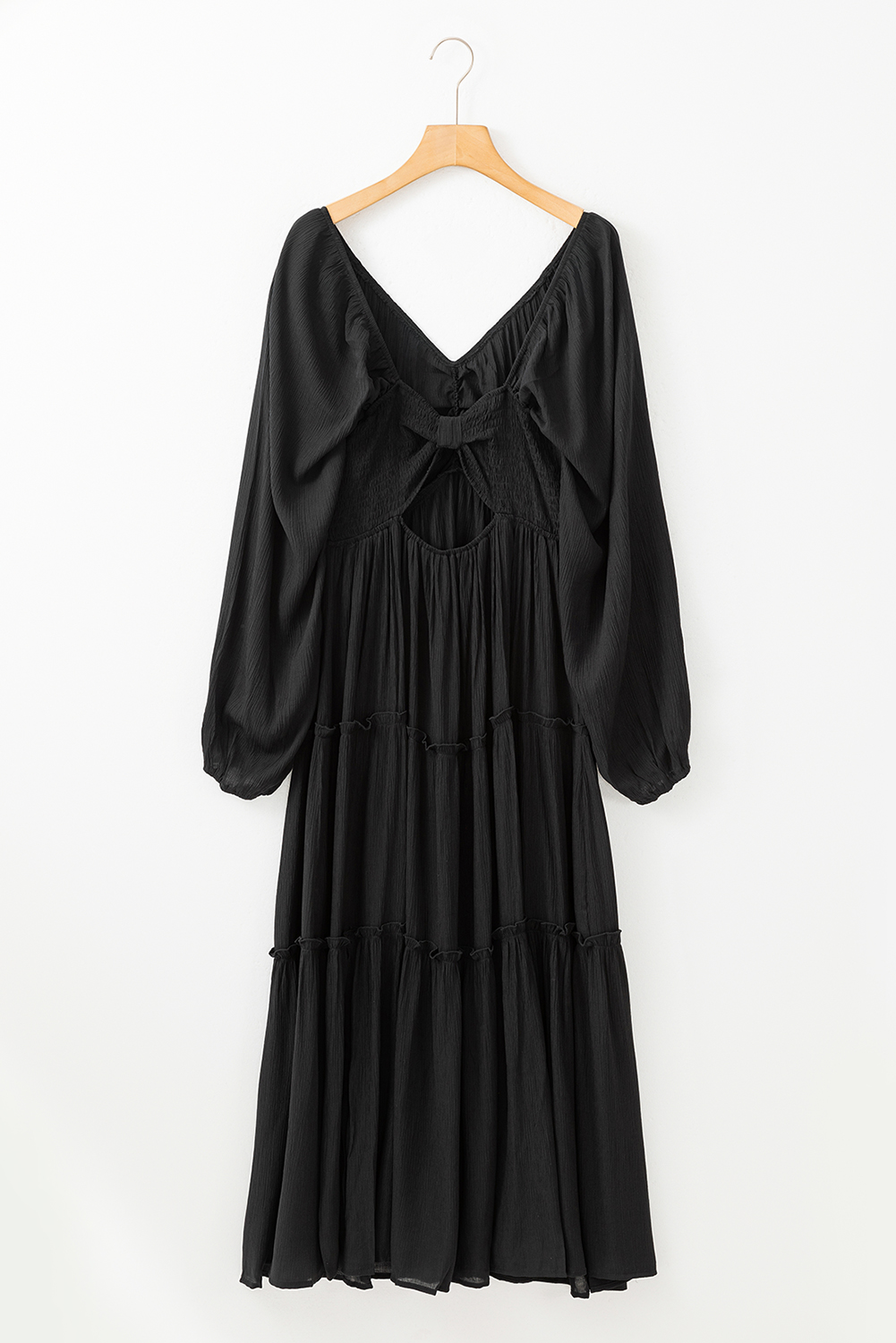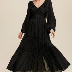- Tiered ruffled details add an elegant and romantic vibe