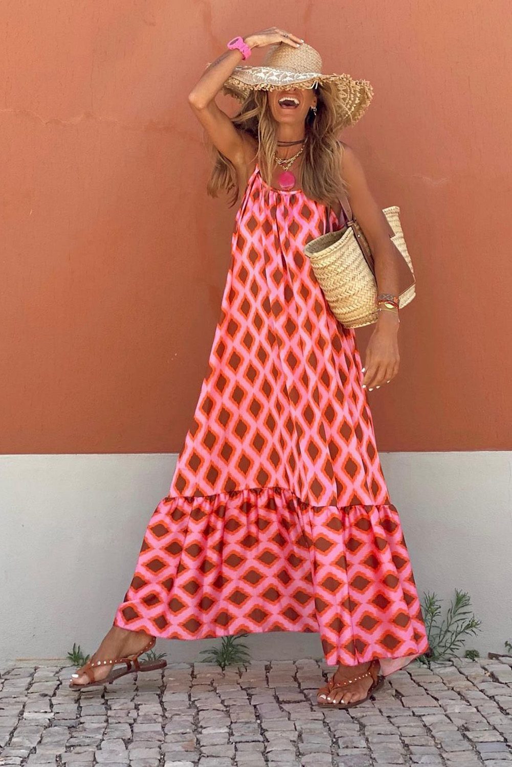 - Unique geometric print pattern makes the maxi dress unique and chic