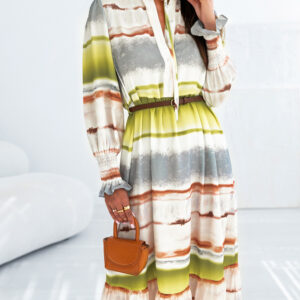 - Casual shift dress cut at a midi length that finished with a ruffle hem