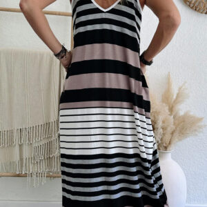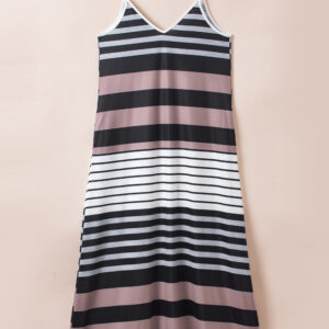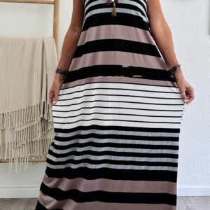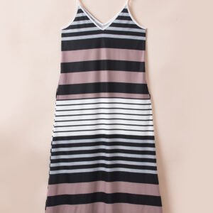 - This maxi dress features a mix of stylish stripes for a trendy look