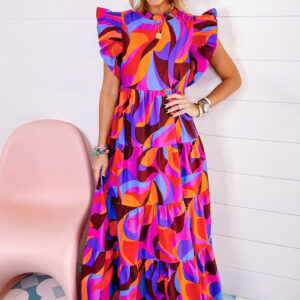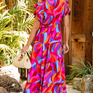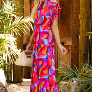 - This dress features a captivating abstract print which adds a touch of artistic flair