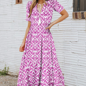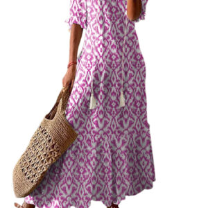 - This V-neck casual maxi dress features a bold and eye-catching geometric print that will make a statement wherever you go