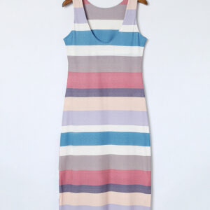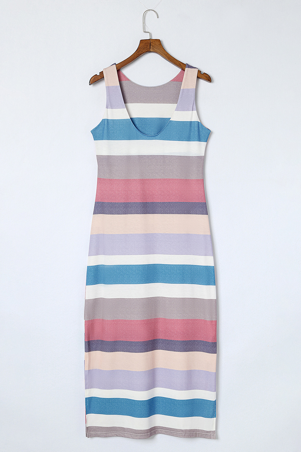 Multicolor Stripe Print Slit Maxi Tank Top Dress