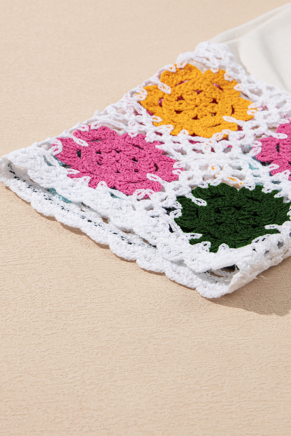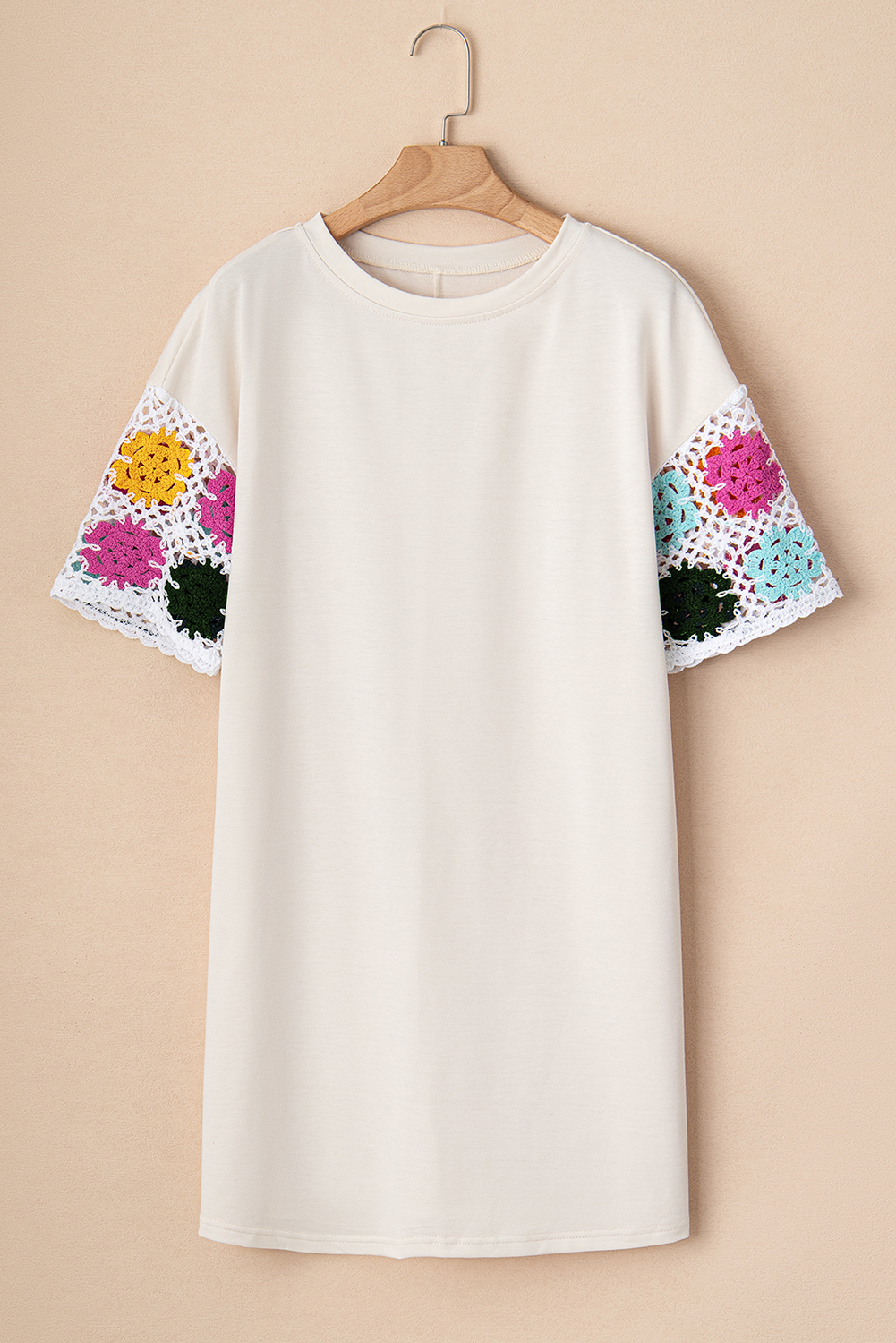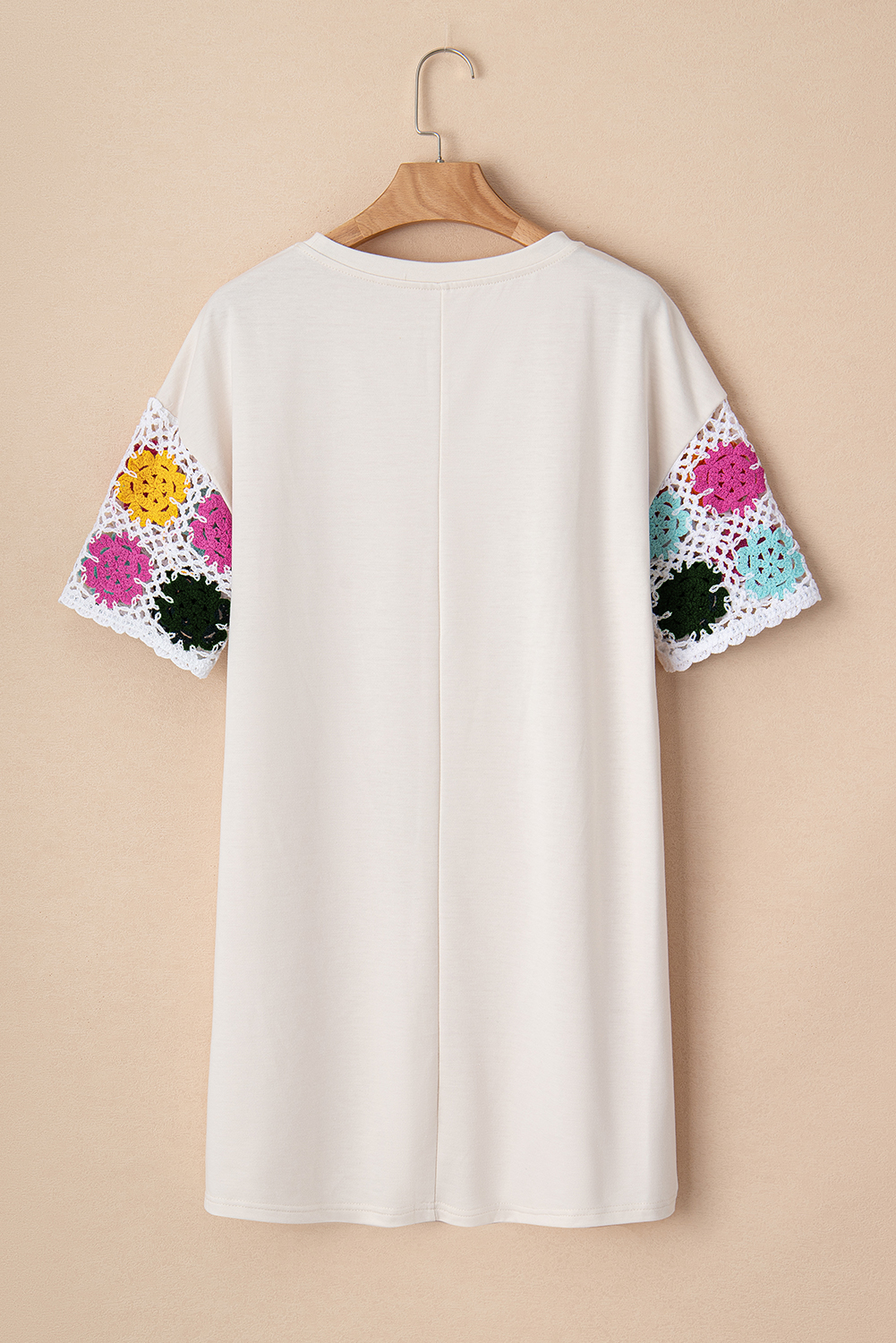 White Floral Crochet Splicing Sleeve T Shirt Dress