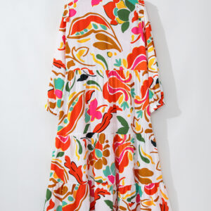 - The dress is adorned with a beautiful floral print that brings a touch of nature elegance.