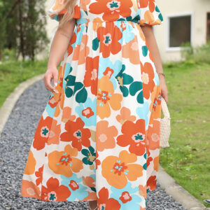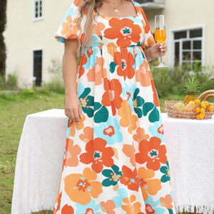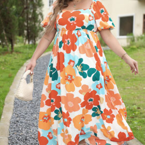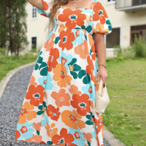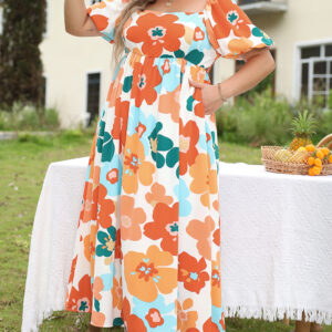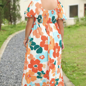 - Square neck, short puff sleeve, shirred back and maxi length finished