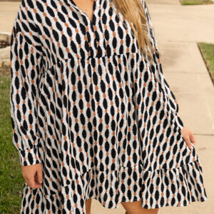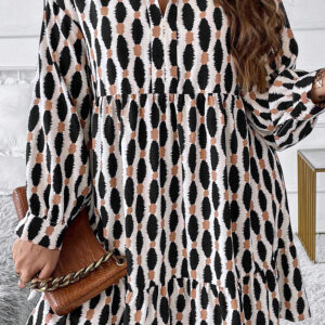 Apricot Geometric Print Collared V Neck Plus Size Mini Dress
