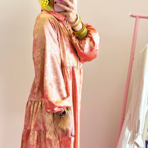 - This curvy dress has a sparkling silhouette with a metallic look.