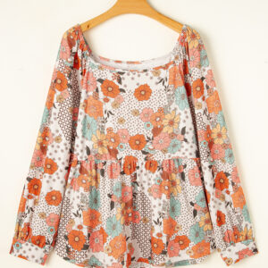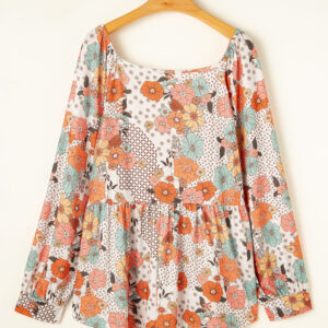 - This floral blouse adds a fresh and feminine touch.