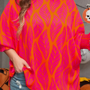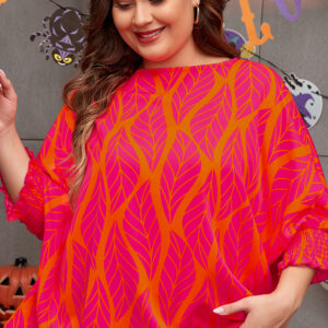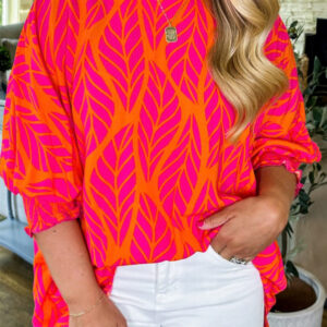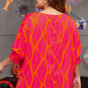 Rose Leafy Printed Smocked Lantern Sleeve Plus Size Blouse
