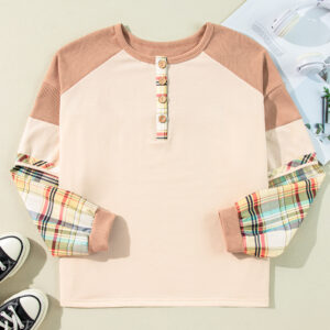- The curvy top features a timeless plaid pattern, adding a classic touch of style and versatility.