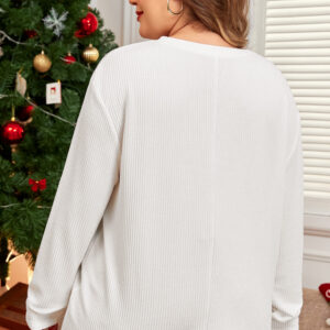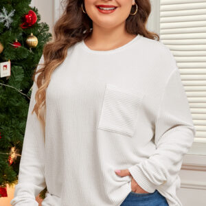 White Plus Size Ribbed Textured Long Sleeve T Shirt