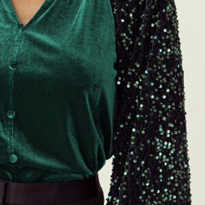 Long, loose sequins sleeves with elastic cuffs adds extra sparkle.