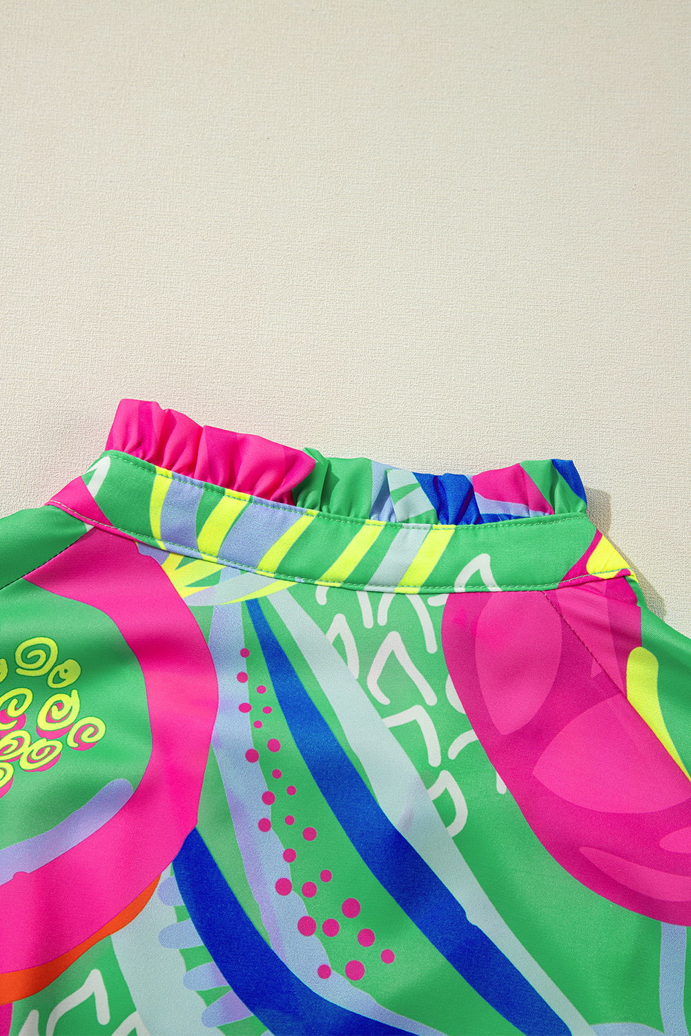 - Stand out with ruffled flounce sleeves and a stylish V-neck.