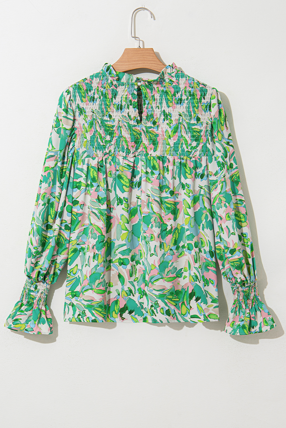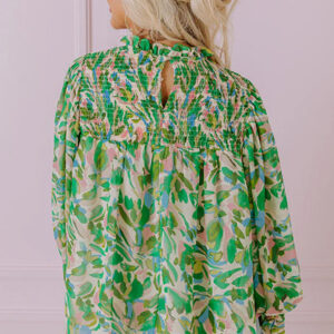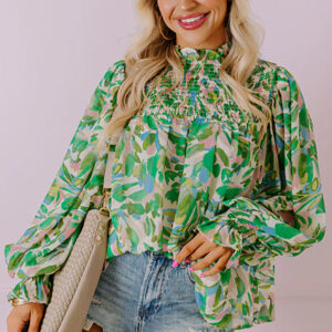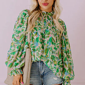 - This printed blouse adds a touch of botanical charm to your ensemble.