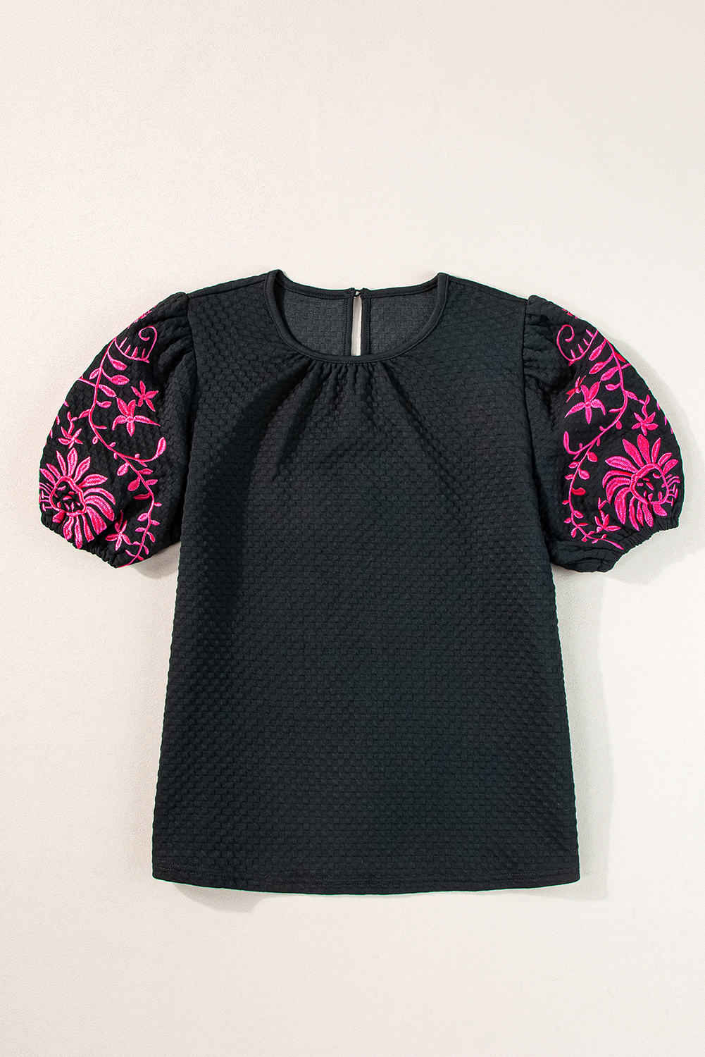 Effortlessly chic with the round neck and adorable puff sleeves