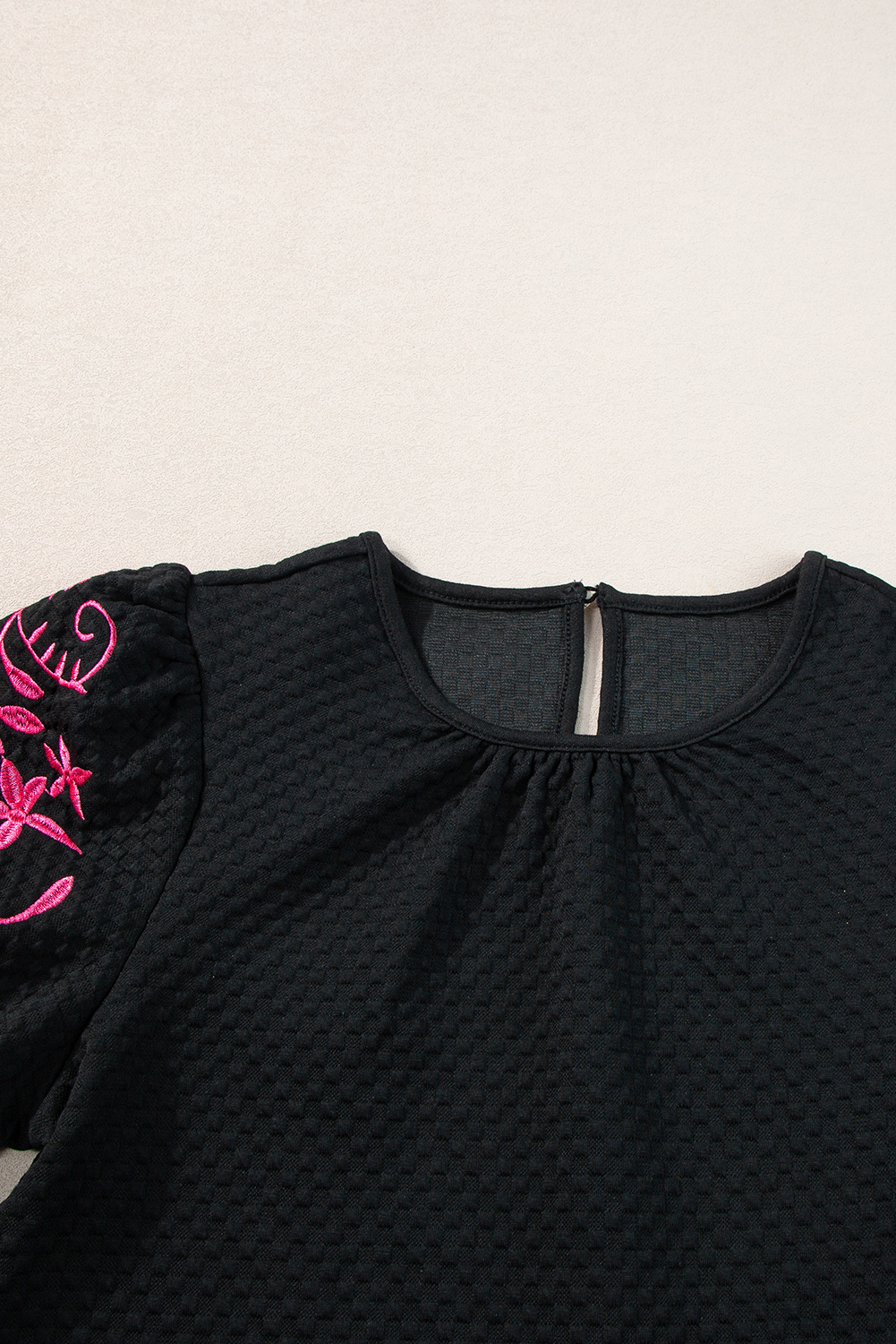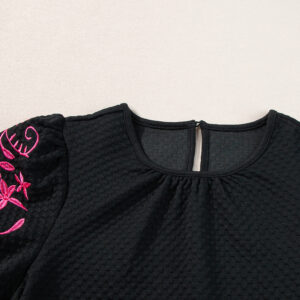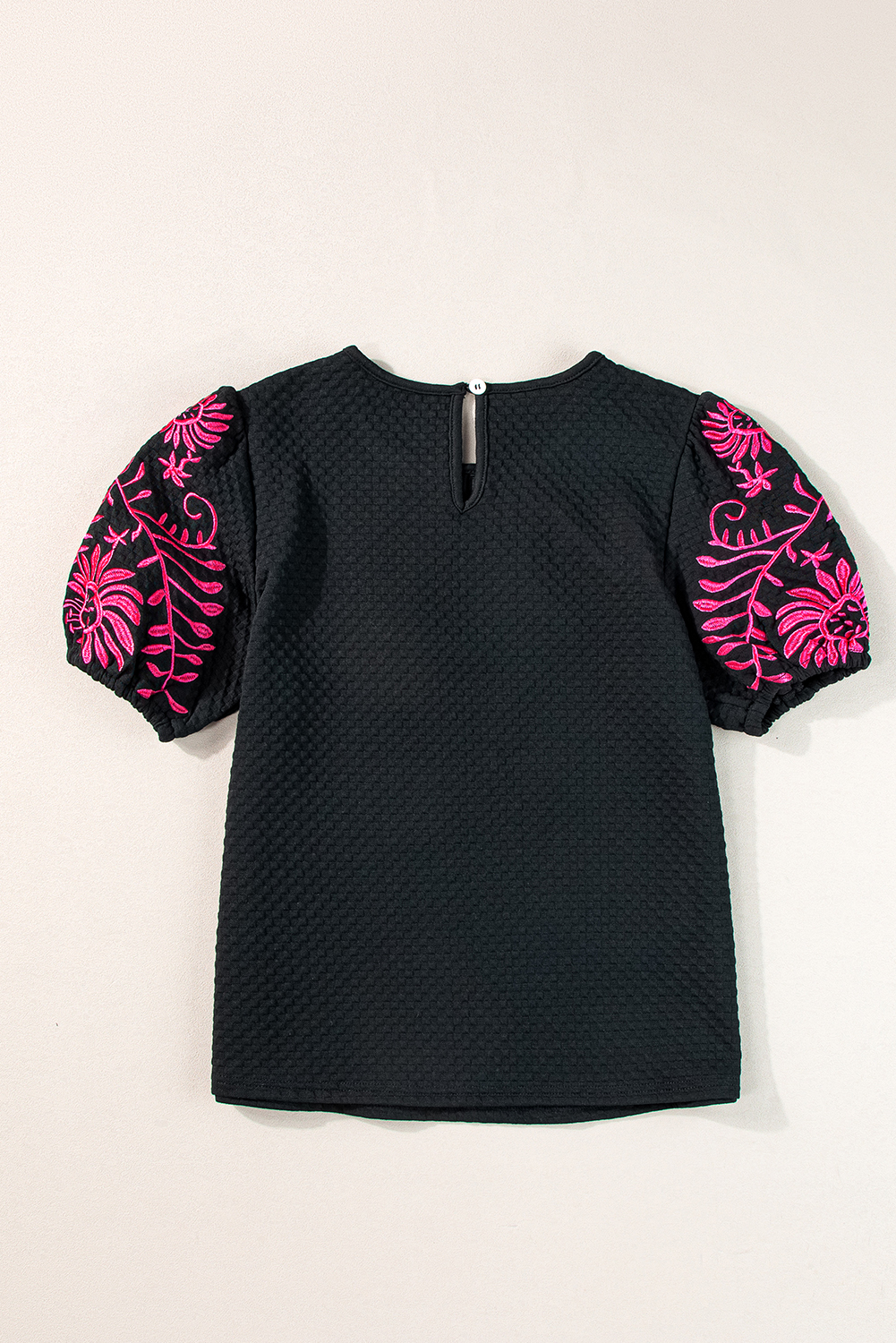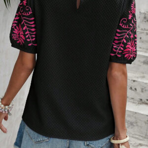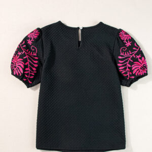 Elevate your style with intricate floral embroidery on the sleeves