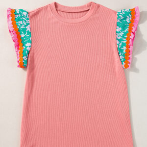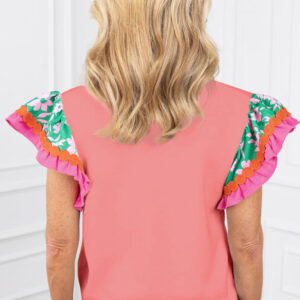 Peach Blossom Contrast Ricrac Floral Sleeve Top